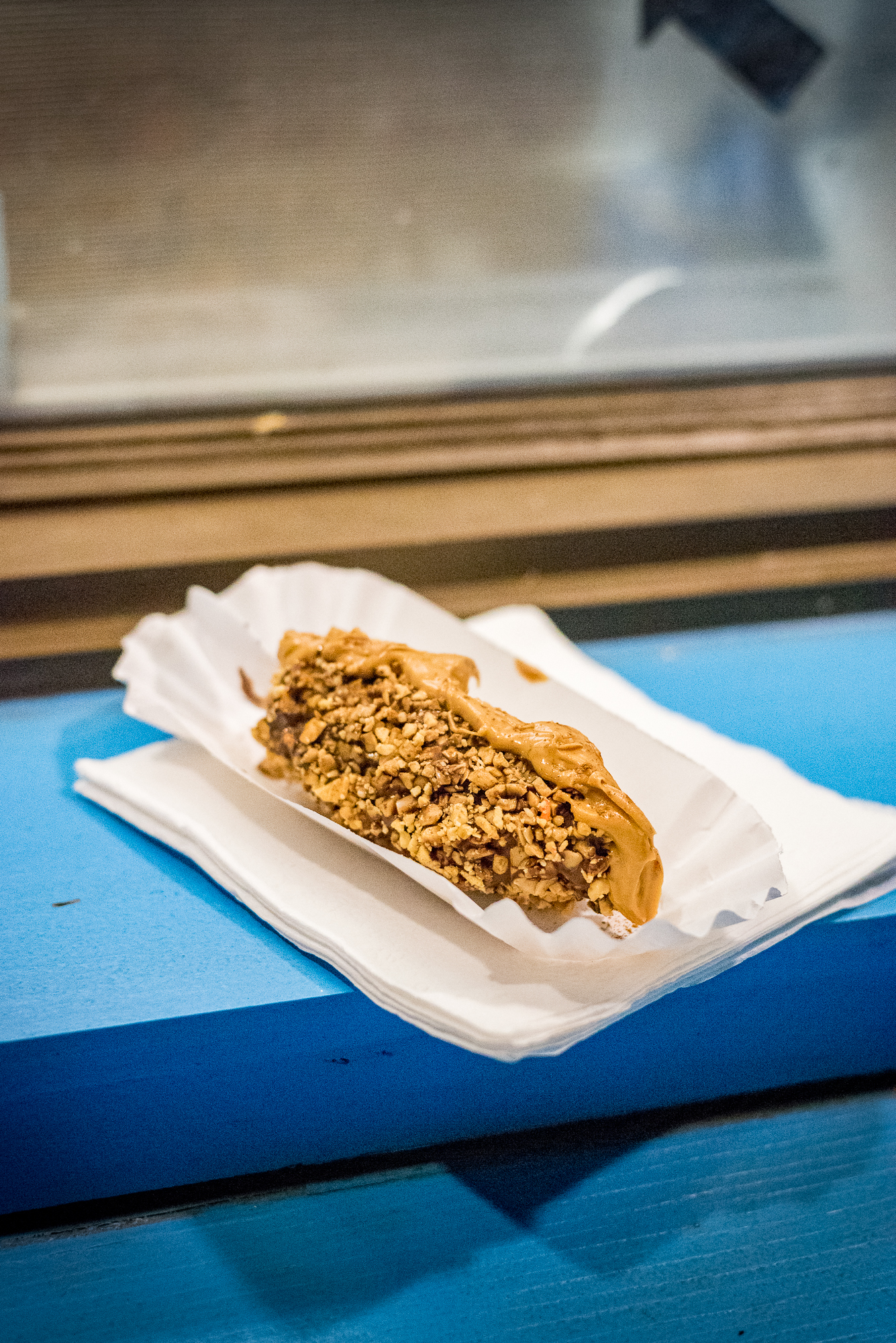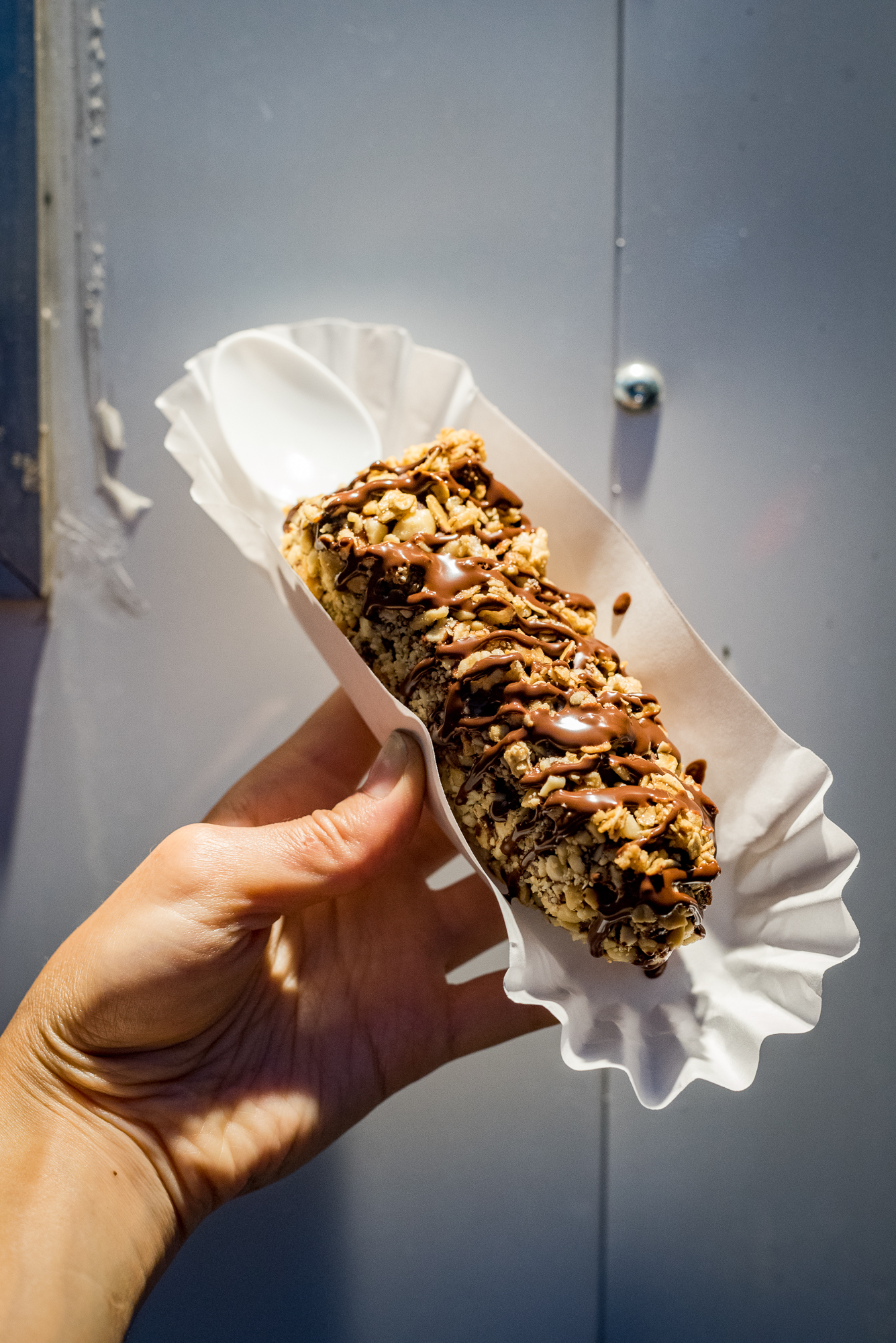 On a typical Austin summer night, it doesn’t take long before the exterior crunchy concoction that envelopes the banana begins to soften, but that’s okay. When too cold, the banana’s crunchy components necessitate each taken as a single bite, missing the point entirely. The slow melt affords the mouth the chance to experience the melding of all the flavors involved in each bite.
